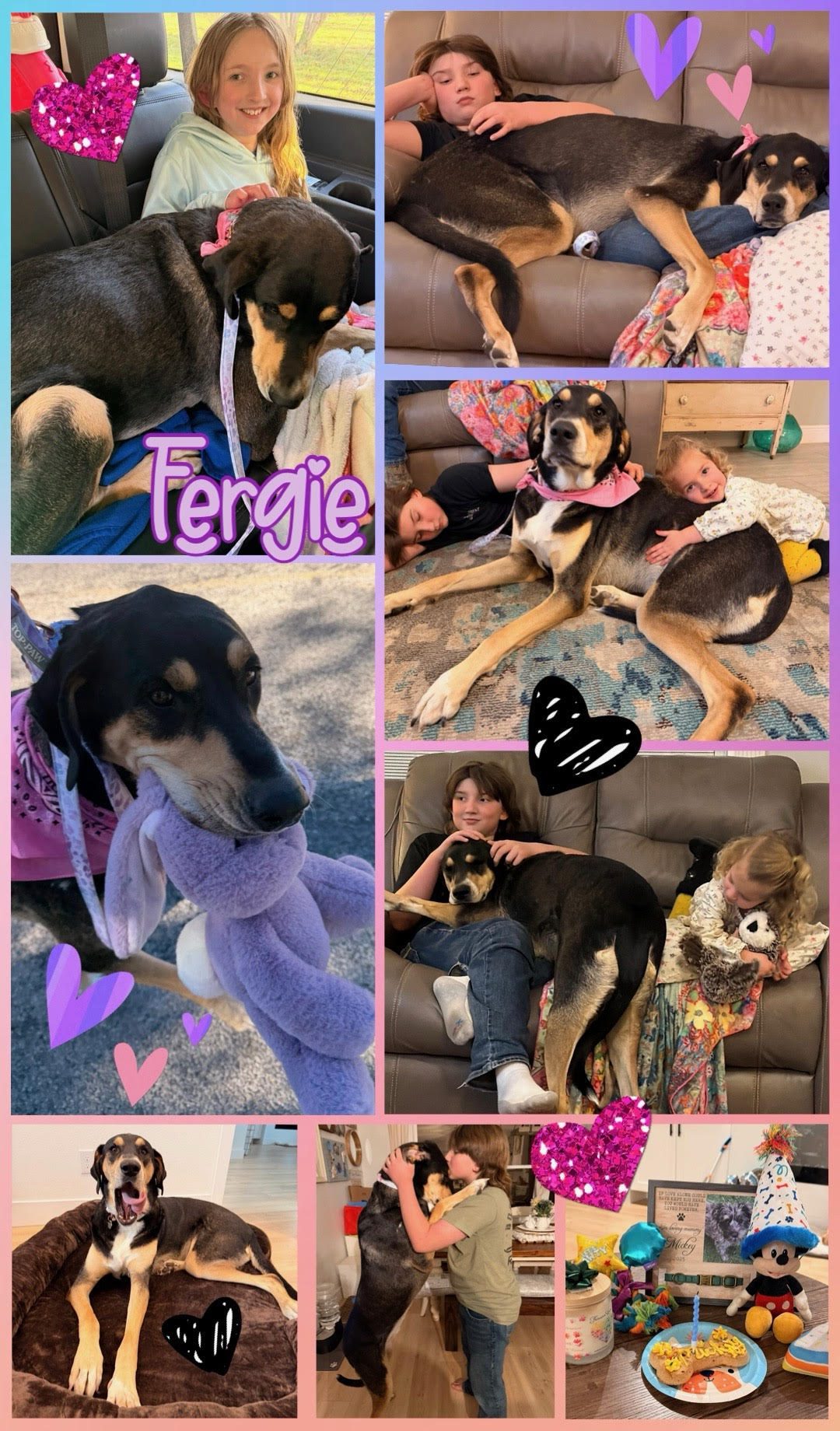 “Fergie truly is an extra special dog and we are all enamored with her but especially the kids. She is not like anything we were looking at to begin with (small fluffy floppy) but is exactly what we all needed. She has all the characteristics I was looking for, for our family, just in a different (and way cooler) package. I’m so glad we found her and that we are the family Valley Dog Rescue entrusted to share her with!